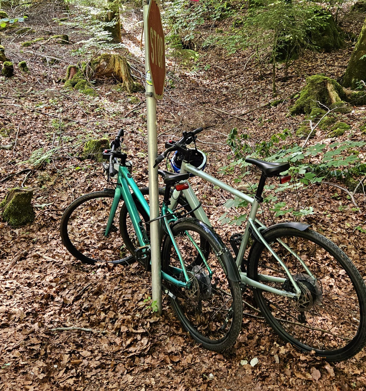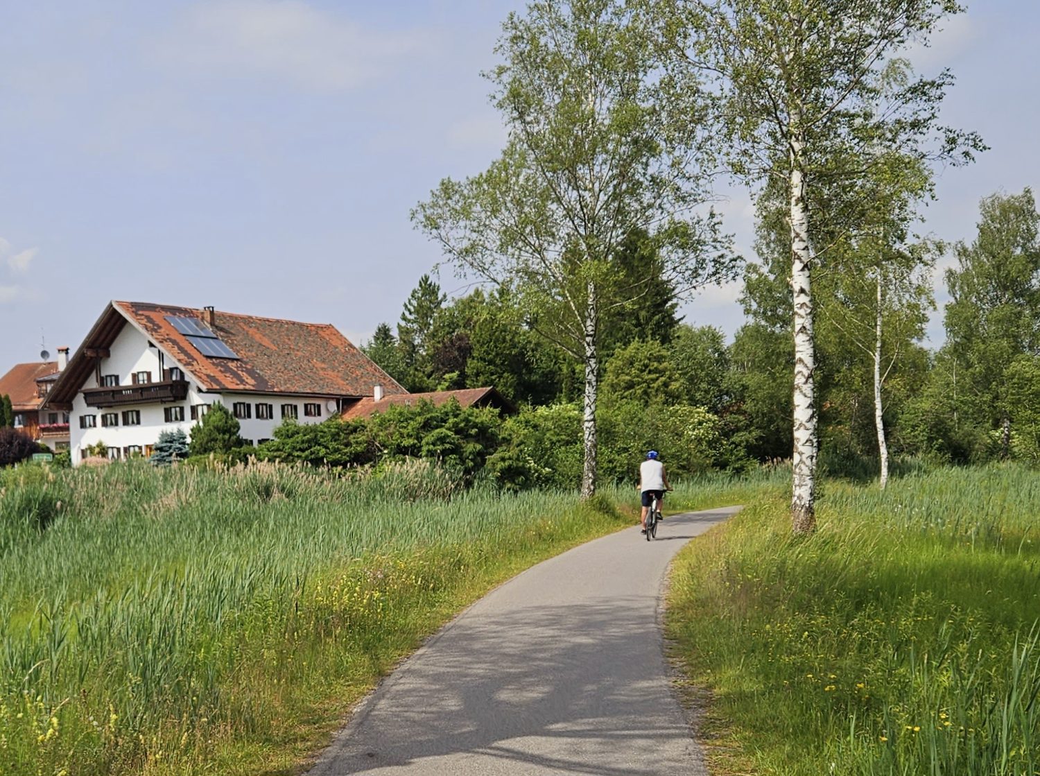 Vi valgte å sykle en annen vei tilbake via Waltenhofen. Selv om vi syklet langs Forgensee så var det ikke mye vi så til den grønne sjøen. Vegetasjon langs veien sperret for utsikten til sjøen.