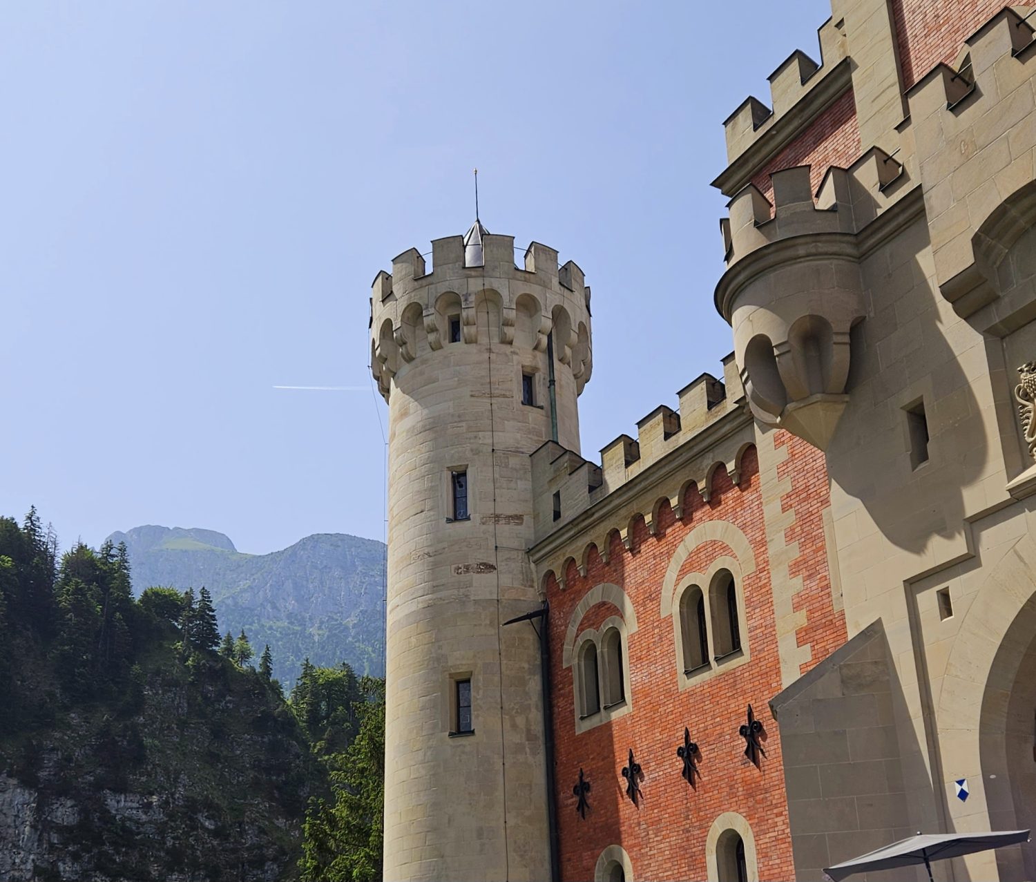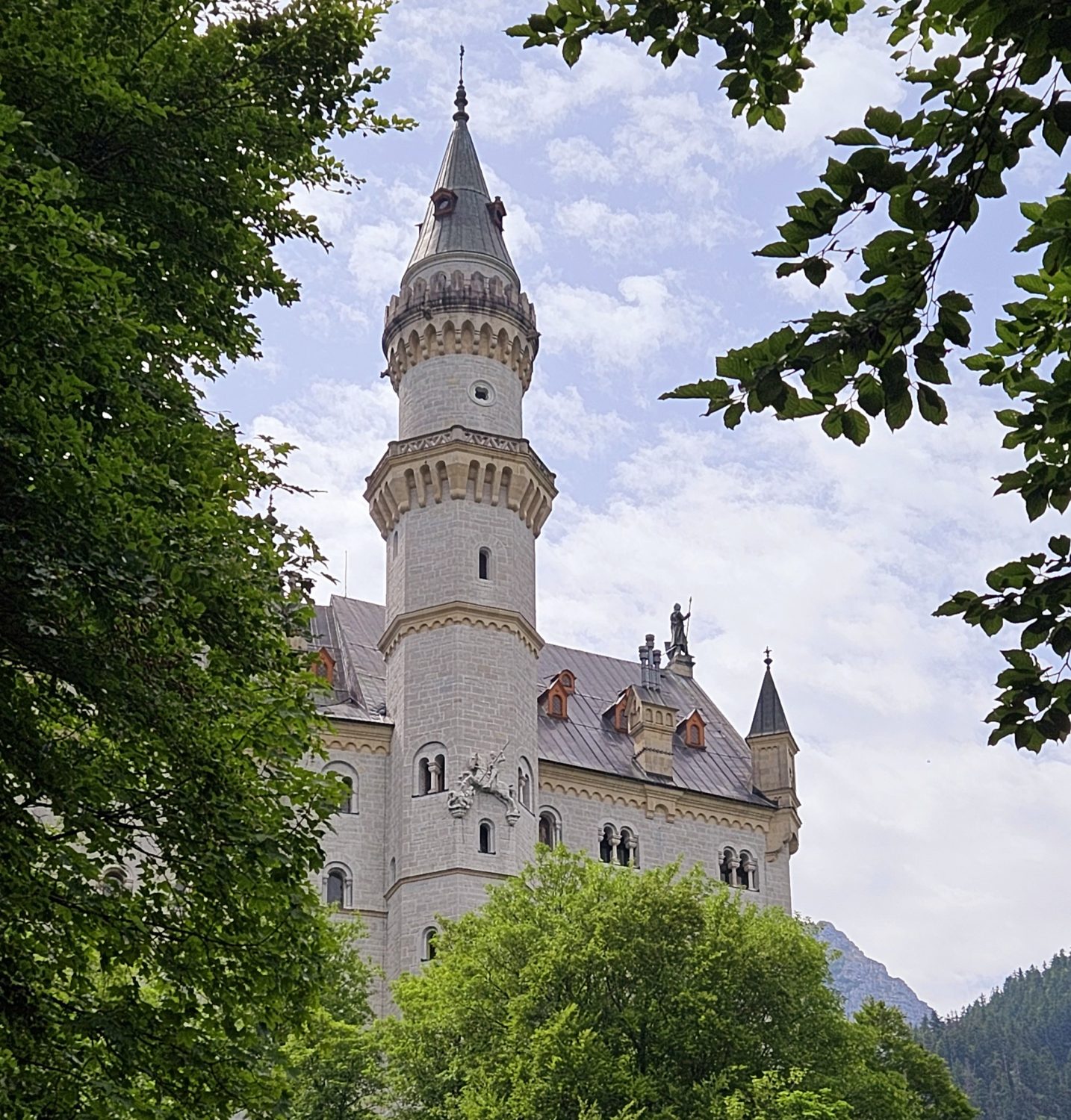 Endelig ble det vår tur – i alle fall til å se det vakre slottet fra utsiden. Skal du se innsiden må du bestille lang tid på forhånd. Men å se utsiden er en gid nok grunn til å gå opp på slottsfjellet. Slottet er som hentet ut fra et eventyr. Eller det er vel slik at de kjente eventyrene har blitt inspirert av dette slottet, bl.a Torneroseslottet i Disney.