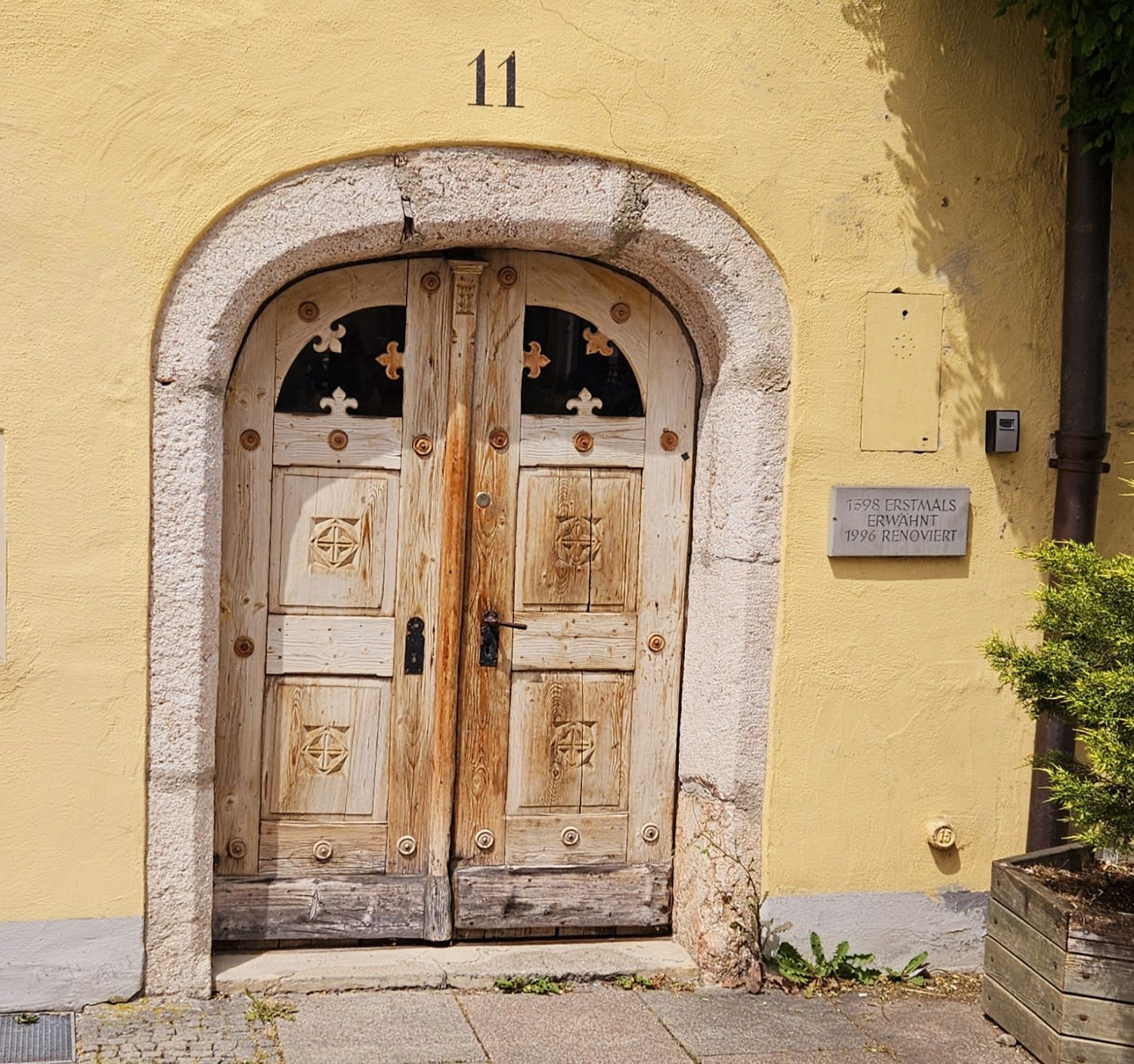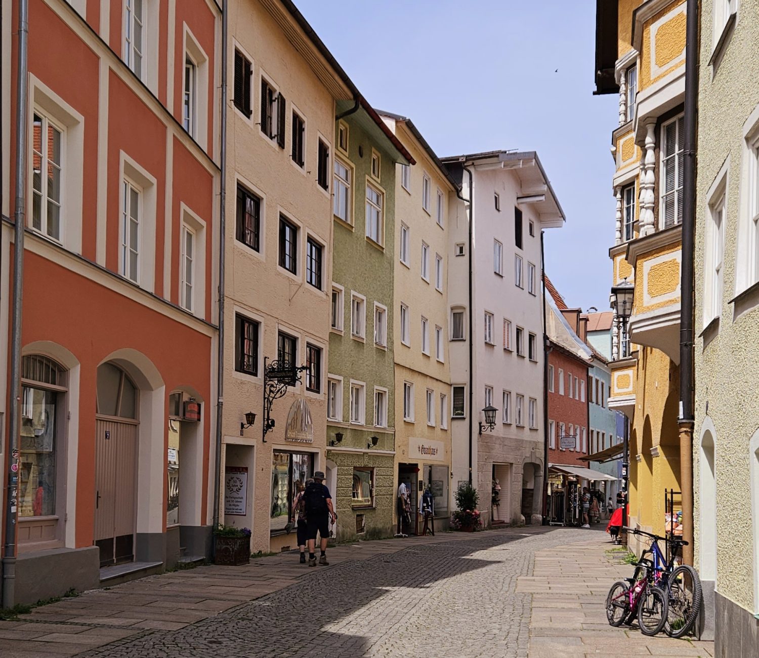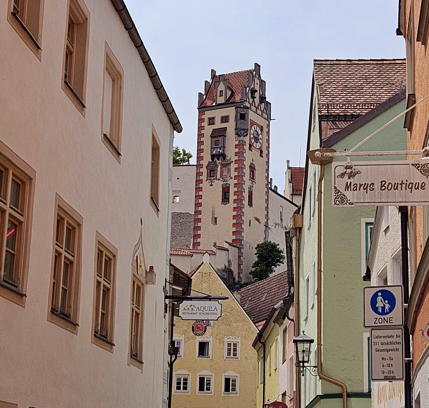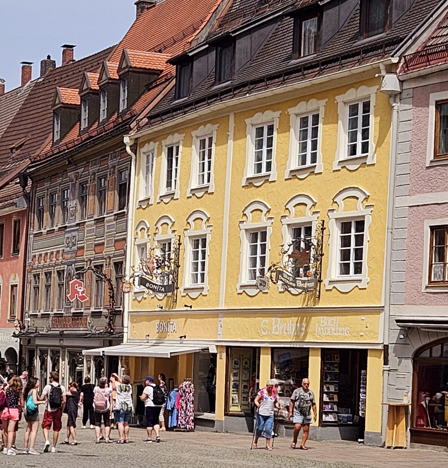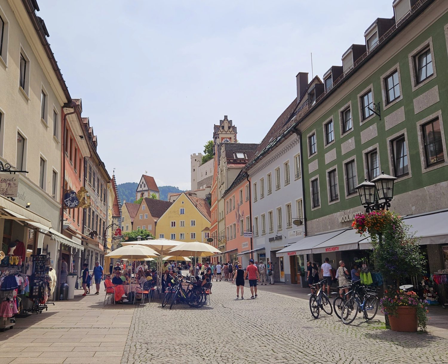 Etter to slottsbesøk syklet vi videre til Gamlebyen i Fussen for litt byvandring og lunsj. Gamlebyen er preget av pastrllfargede vakre hus.